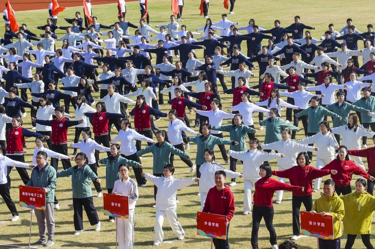 在广播操表演赛环节,学院派出了由党委书记夏冰带队的21人队伍。队员们身着统一服装,动作规范,整齐划一。大家专注的神情和默契的配合,展现了学院教职工良好的精神面貌。