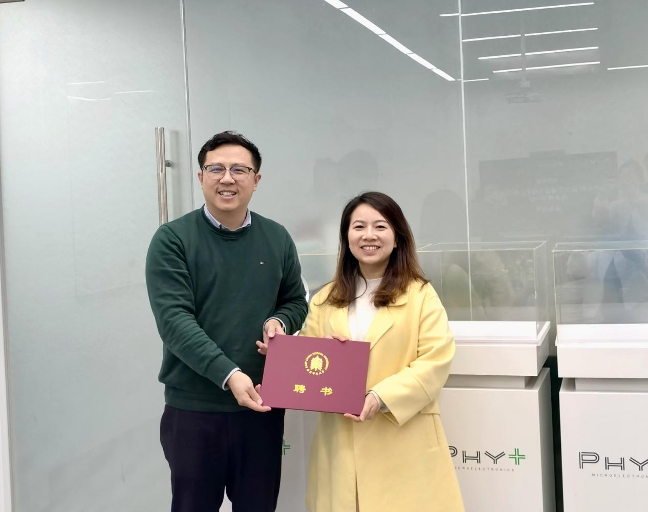 奉加科技2023年在通信与电子工程学院(集成电路科学与工程学院)设立了“奉加专项基金”,并成为学院品牌实践项目“芯人才·影子工程师计划”的支持单位。活动现场,夏冰代表学院向支持学院人才培养工作的吴江枫、卢迪等颁发了“生涯导师”聘书。