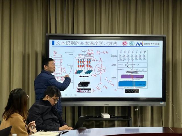 在报告过程中,占老师与参会老师就文本识别的未来发展方向做了一定探讨,包括如何更好地使用自然语言处理的技术提高识别性能以及在半监督、弱监督、无监督、自监督等不需要大量标注样本的情况下的文本识别技术,与学院师生就文本识别技术展开热烈讨论。