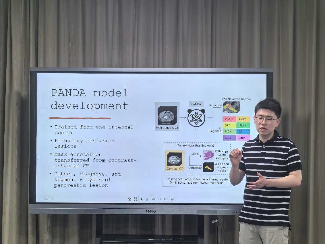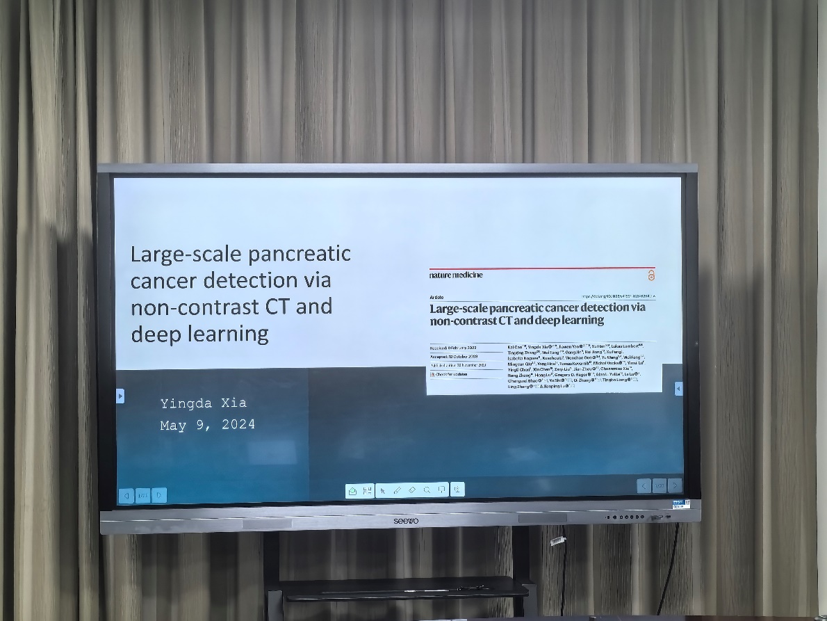 2024年5月9日下午,阿里巴巴达摩院医疗AI实验室的夏英达博士来我院做题为《Large-scale pancreatic cancer detection via non-contrast CT and deep learning》的精彩学术报告,详细介绍了他在《Nature Medicine》上发表的最新研究成果,本次会议由王妍教授主持。