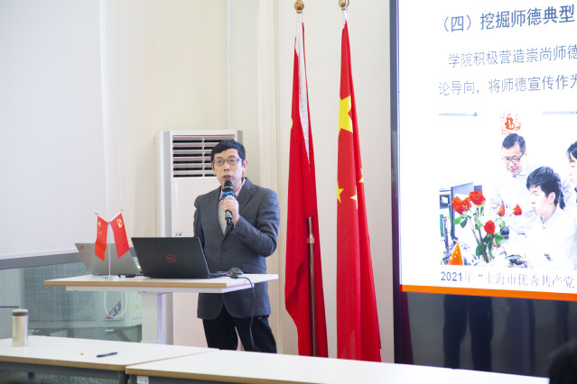 党委书记郑正奇首先介绍了学院巡察整改工作,指出要进一步提高政治站位,切实把巡察整改工作当作一项重要政治任务抓紧抓实抓好,积极推进巡察整改工作责任落实、措施落实。随后总结了学院2021年师德师风建设工作,结合校内外真实案例,提醒学院教师在教学科研以及教师职业道德等方面严格要求,维护良好的教师职业形象。同时希望全体教职工深刻认识学校疫情防控面临的严峻形势,从严落实疫情防控各项工作措施,并传达了学校关于意识形态工作精神,部署学院意识形态工作。