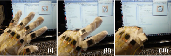针对以上挑战,吴幸教授团队一直致力于先进器件的研究工作:探索压力、温度、湿度和光电等传感器在穿戴式、可靠性检测和物联网领域的系统应用。前期工作发表在相关领域高水平期刊,如Nature Communications (两篇)、Small (一篇)、Sensor (一篇)等。此次双模传感器的成果是前期工作的拓展与延续。该双模传感薄膜灵敏度高、高频响应好,可以套在手指上,用于识别“石头”、“剪刀”和“布”的手势,分类精度达99.4%。同样的,电信号可以使双模执行器弯曲变形,以模仿人手抓举物体的动作,这为智能传感技术的集成提供了新思路。