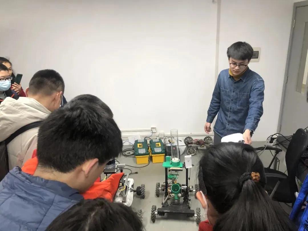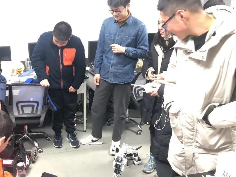 学校参观结束后同学们来到通信与电子工程学院,进入多维度信息处理重点实验室,王慈老师介绍了实验室的概况。学长们给同学们展示科技成果,同学们跃跃欲试,在电脑上修改程序语言来变化机器人的舞姿,在自己操作过程中,同学们对人工智能产生了浓厚的探索兴趣。