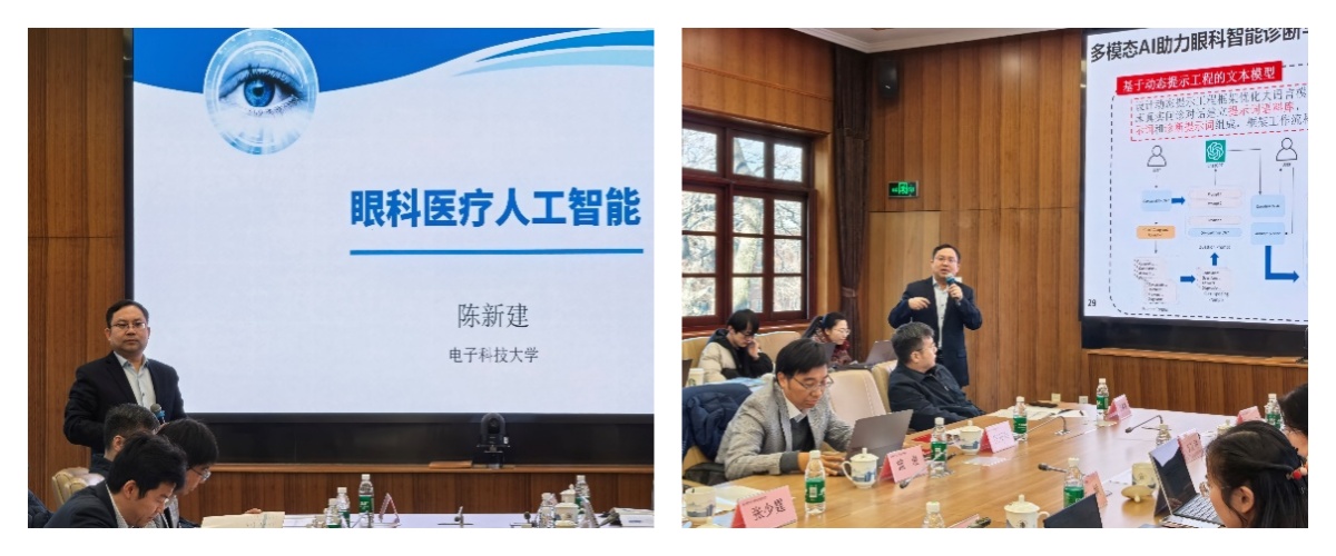专家报告环节中,电子科技大学陈新建教授在《眼科医疗人工智能》报告中,针对眼科诊疗资源紧缺、设备昂贵等挑战,提出以自主研发与人工智能技术融合的解决方案。他重点介绍了适配临床的视网膜疾病OCT筛查云平台,并提出通过不确定性启发的开集学习提升异常识别能力,运用元学习方法辅助罕见眼底病分割。此外,团队还研发了基于大模型的在线问诊App与AI报告生成技术,以推动眼科诊疗的智能化与高效化。