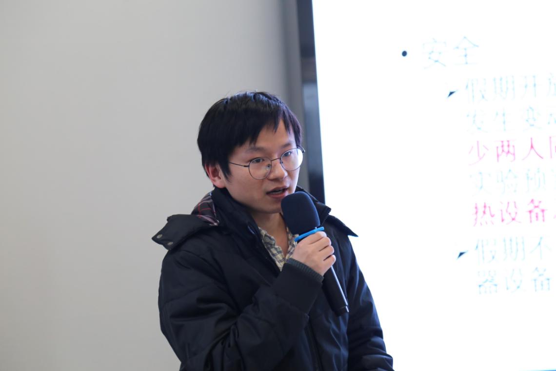 学院副院长乔德礼布置了2021年教学工作和实验室安全工作,指出疫情之下要做好线上教学准备,并介绍了学校关于课程卓越研讨工作方案,要扎实推进卓越育人工作,加快推进建立新的课程规范和体系。关于安全工作方面,各实验室要做好备案管理工作,不开放的实验室做好全面自查,确保安全。