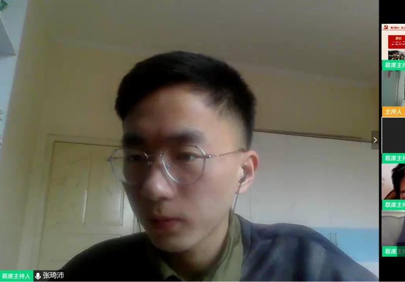 彭晓川同学结合数据、新闻分析了这次疫情中体现出的中国力量和速度、责任与担当,激发了每个人的爱国热情;方堃同学认为新时代的青年应把理想信念作为思想行动的指明灯,用责任检验人生;刘子傲同学指出我们青年人在社会肯定与关爱中成长,更应该在抗击疫情的战争中磨炼意志,彰显出何为有理想,有本领,有担当;陈建初同学作为抗疫基层志愿者,用自己的实际行动践行了新时代青年的责任担当,从基层工作者的角度,指出基层工作在这次抗疫战争中的重要性。