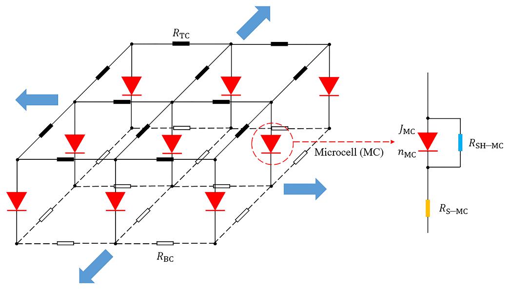 充分开发利用太阳能是人类解决能源危机、应对气候变化的有效举措。太阳能电池是利用太阳辐射能进行光伏发电的关键器件。然而,由于光伏材料固有的晶粒结构以及制备过程中所采用的特定工艺,在半导体太阳能电池中普遍存在缺陷。这些缺陷会造成电池空间上的非均匀特性并且降低转换效率,严重威胁着电池的使用寿命与整体性能。为了突破缺陷对提升转换效率所造成的束缚、为太阳能电池的设计制造提供更多参考意见,对缺陷进行深入透彻的研究分析具有十分重要的意义。半导体太阳电池主要的结构就是一个pn结,施加正向偏压后也会发光,也就是电致发光(EL, Electroluminescence)现象。研究团队基于此,开创性地提出了不同于以往利用SEM、TEM等显微技术在物理层面对太阳能电池的缺陷进行表征分析方法,将电致发光成像技术与集成电路领域中的电路建模仿真思路巧妙地结合在一起,实现了从电学的角度对缺陷进行非破坏性的、可视化的定量分析,更重要的是还可揭示出缺陷的起源。