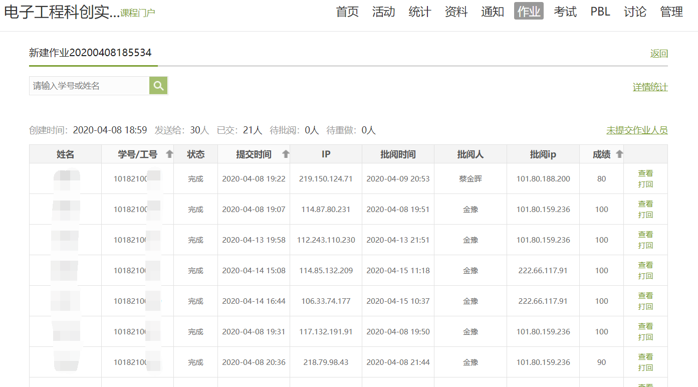 课后作业批阅情况