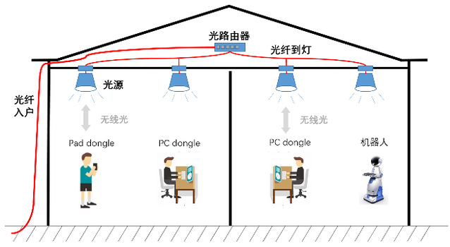 图1 室内全光LiFi移动互联网络原理图