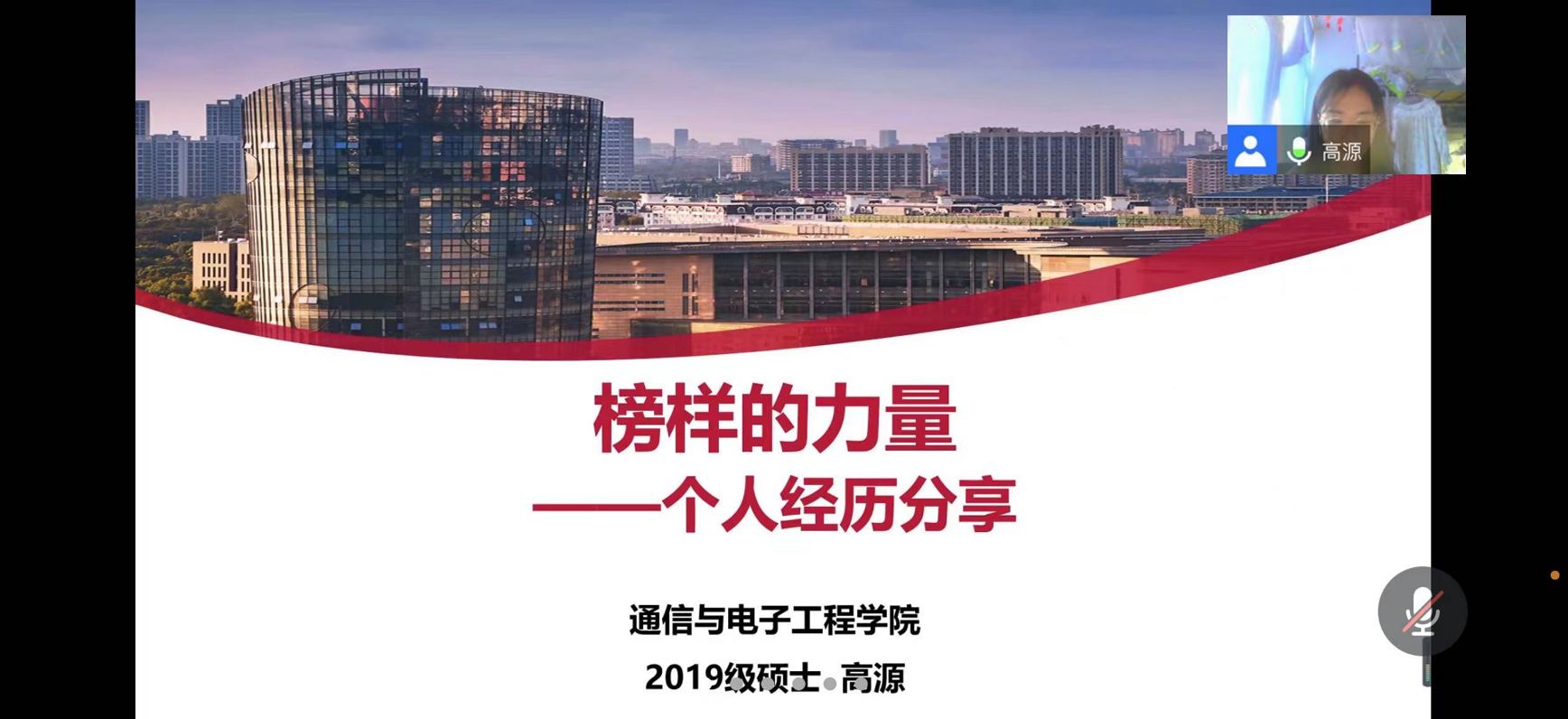2022年5月3日上午,通信与电子工程学院研究生电子设计竞赛经验分享会以线上的形式举办。学院2019级硕士研究生高源进行了题为“2019-2021:我的三次研电赛之旅”的分享会,近百名不同年级的学生与会聆听。分享会由辅导员祝菲尔老师主持。
