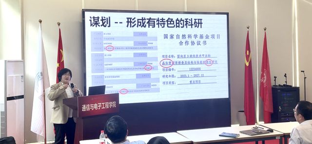 首先,科技处项目主管陈美老师为学院老师作主题为“通信学院国家自科2024申报交流”的报告,深入解读了联合基金、国际合作、重大研究计划、原创探索以及专项项目的申报要点,指出项目申报要提前布局,拓展申报渠道,通过详细介绍相关科技项目的申报经验,提升了我院教师申报科技项目的积极性和自信心。