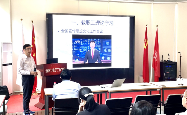 副院长乔德礼介绍了学院研究生教学和本科生教学的近期工作,汇报了学院预推免情况,感谢各位老师在信息与通信工程学位点评估和本科教育教学审核评估过程中的辛勤付出,同时强调了学院安全工作。