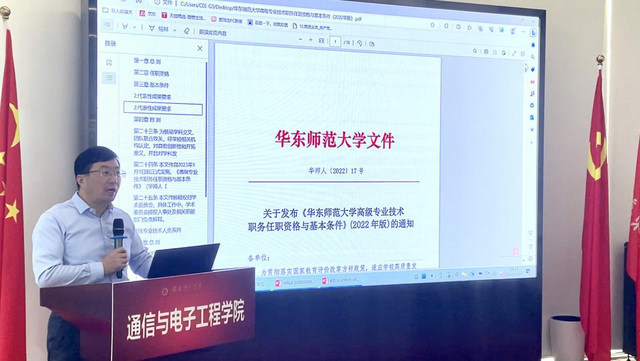 最后院长吕岳解读了学院新发布的文件《华东师范大学高级专业技术职务任职资格与基本条件》,具体介绍了科研项目和代表性成果等要求,并对论著类、科研项目类、科研成果奖励类等方面进行详细阐述,让老师们深入理解高级专业技术职务任职要求。