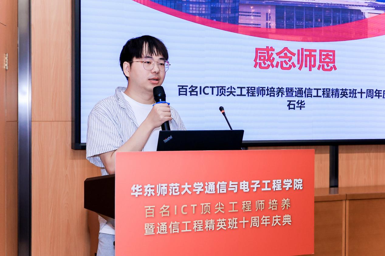 张鼎校友回忆起在校期间老师们严谨的治学态度和无私的关怀指导,表达了对学院及刘一清老师和王淑仙老师的深深敬意与感激;石华校友通过分享自己从求学到ICT工程师的心路历程,感慨精英班的训练对自我成长提供的巨大助力。