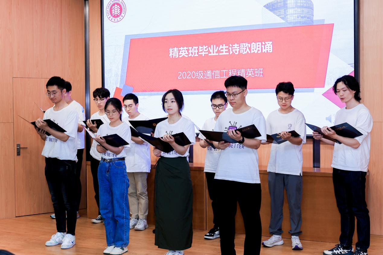 2020级通信工程精英班毕业生声情并茂地进行了诗歌朗诵,通过精彩的演绎展现了青年学子们对师恩的感念、对科技探索的热情和对梦想的执着追求,赢得了现场阵阵掌声。