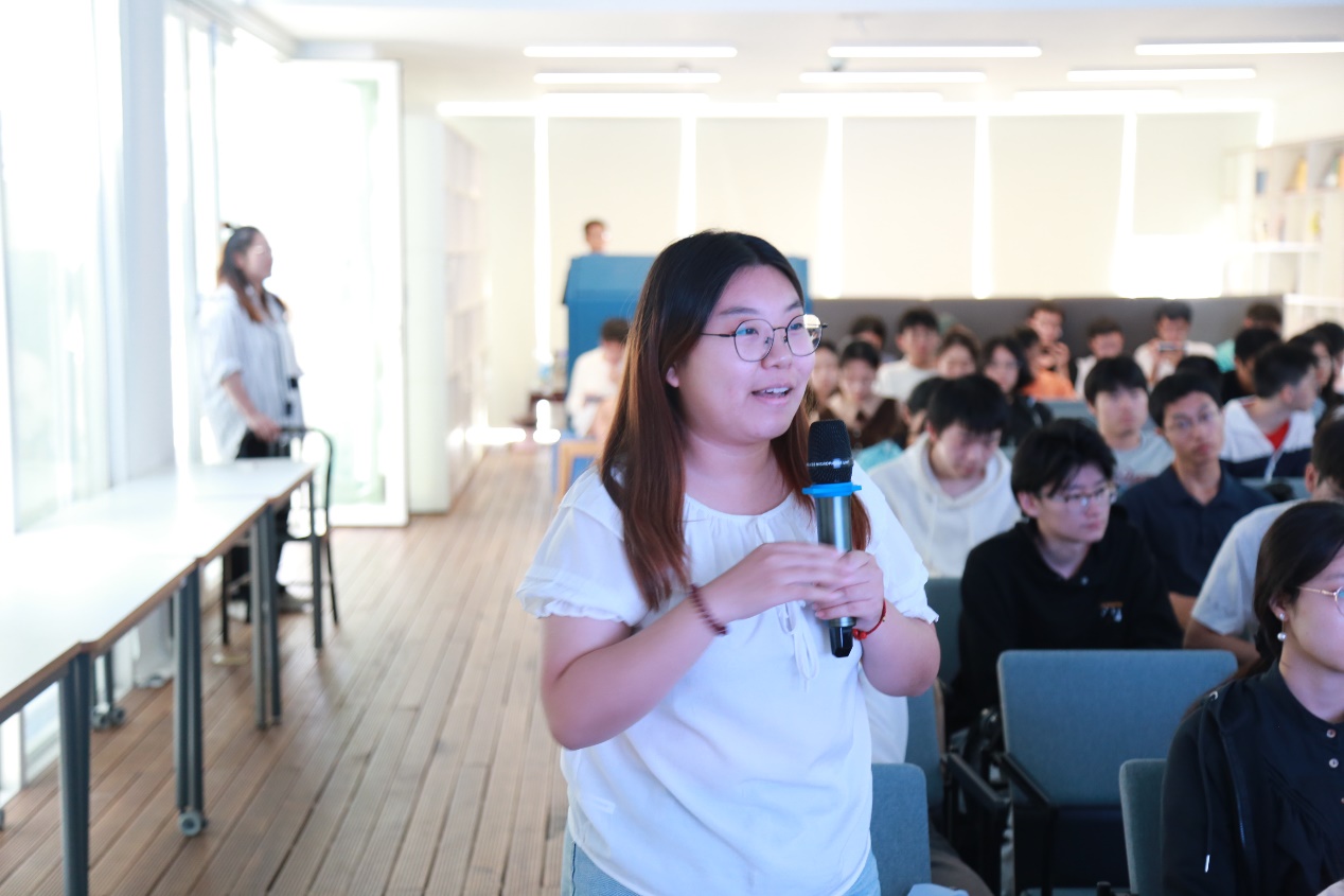 互动环节,同学们结合自身实际就如何创业、如何在就业与创业之间进行选择、创业精神培育等方面继续与王婉芳校友展开深入交流。王婉芳校友对在校青年学子提出建议,要积极参加双创比赛,在不断的历练和挑战中培养创业精神,要学会充分利用校内外公共服务资源,借助创新创业资源提升自己的创业能力。
