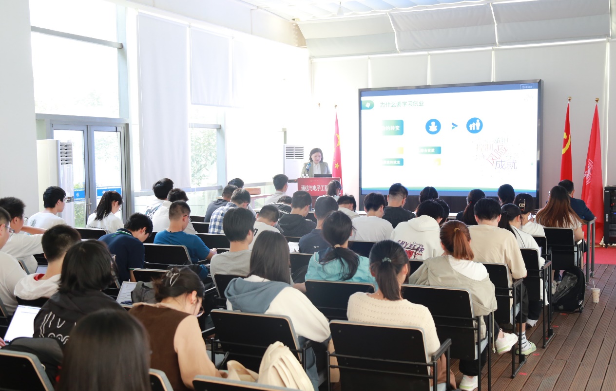 2023年11月1日,飞翔论坛第二期第十讲《上海青年创业政策解读与公共服务实践》在信息楼魔方厅举行,此次讲座邀请到了2002届微电子专业的校友王婉芳担任主讲嘉宾。论坛由通信与电子工程学院党委书记郑正奇主持。