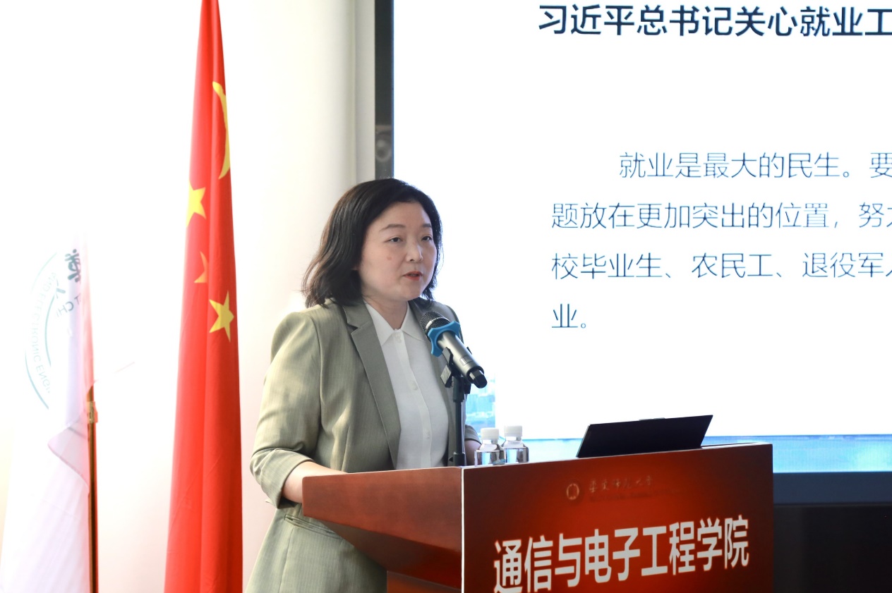 郑正奇首先代表母校对王婉芳校友的到来表示热烈的欢迎与感谢。他谈到,通信与电子工程学院历来是以创新创业作为人才培养的特色和优势,同学们在开展双创项目的过程中可能会有一些困惑,王婉芳校友担任上海市就业促进中心创业指导处培训科科长,对创新创业及相关政策有着深刻的理解,希望通过本次飞翔论坛,能够让同学们消除困惑,激起斗志,明晰思路,能够更好地进行自己的双创规划!