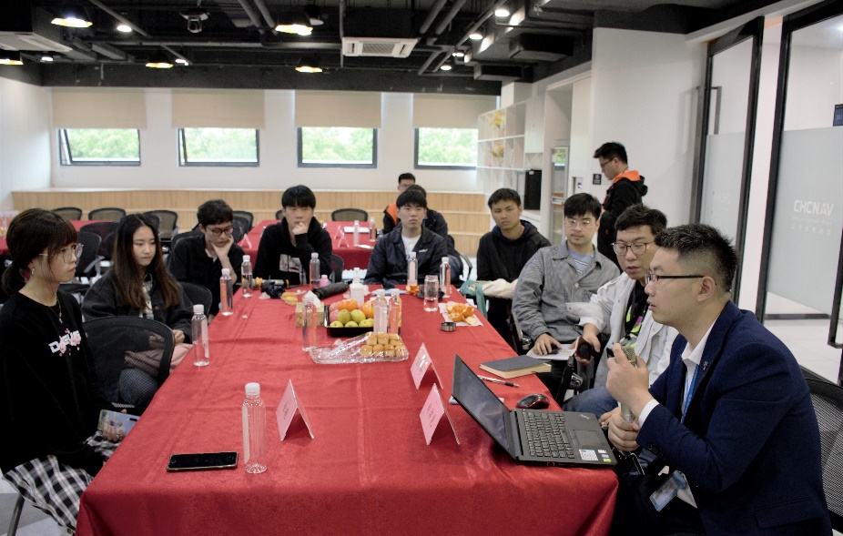 在校招项目经理胡柯武的带领下,师生听取了关于公司近5年的发展历程、自主研发的GNSS芯片和板卡技术、现有的多行业主流定位应用方案等多方面的介绍。其中,包含SLAM、激光雷达和GNSS技术的多源融合定位在无人机、无人船和智慧农业领域的技术部署和应用引起了师生们的极大兴趣,也让师生对于定位导航产品级应用,产业和实验室现有研究的融合有了更清晰的认识。