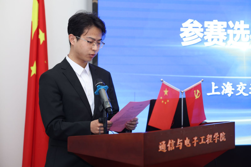 参赛选手代表上海交通大学杨江珂宣誓