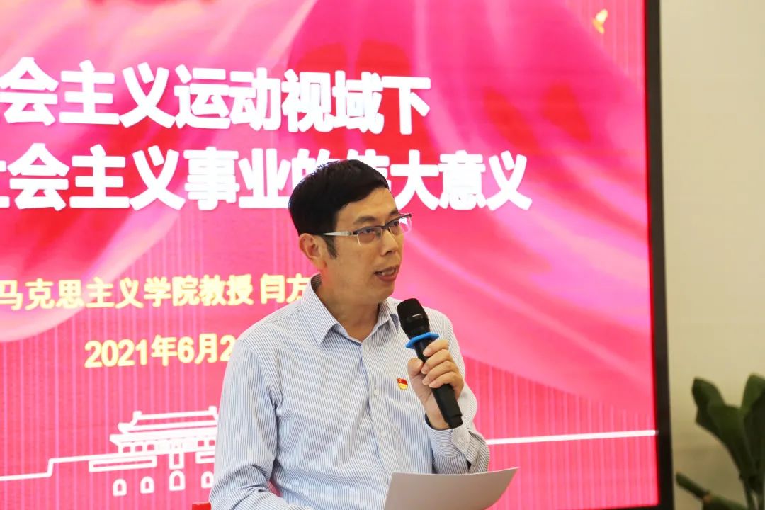 2021年6月2日,通信与电子工程学院党委举办党史学习教育讲座,邀请市委讲师团党史学习教育专家宣讲团成员、我校马克思主义学院教授闫方洁老师作题为“世界社会主义视域下中国特色社会主义事业的伟大意义”的专题报告,学院全体师生党员聆听报告。