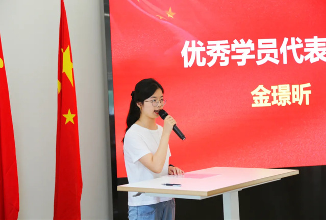 金璟昕同学作为学员代表发言,他表示通过党校学习进一步提升了自己的政治素养,坚定了理想信念,体会到共产党人为人民谋幸福、为民族谋复兴的初心和使命,今后会继续以党员标准严格要求自己,以实际行动来践行入党初心使命。