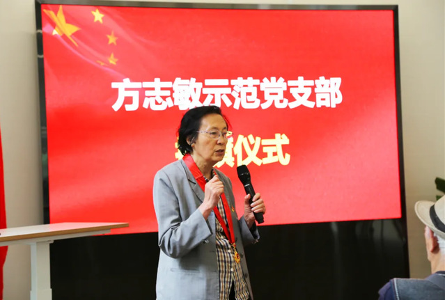 1958级方志敏班校友、学院关工委委员许春芳老师介绍了当年成立”方志敏“班的初心,学习方志敏精神,激励着班级同学不断前行。今天她很开心完成了方志敏班所有同学的心愿,将方志敏的精神传承下去,将方志敏的旗帜交给年轻一代党员的手中,希望方志敏示范党支部倍加珍惜这份荣誉,发挥党支部的战斗堡垒作用,起到模范带头作用。
