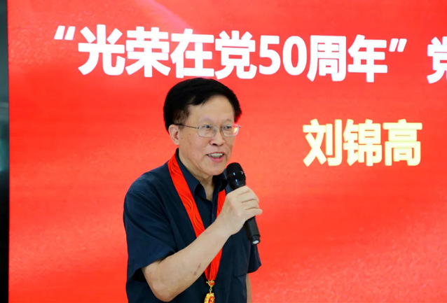 颁奖仪式结束后进行了“光荣在党50年”纪念章颁发仪式,学院党委书记郑正奇为50年以上党龄老党员颁发了纪念章。“光荣在党50年”党员代表刘锦高发言,他表示自己非常自豪,徽章是党中央的肯定和褒扬,希望年轻党员传承红色基因,忠诚履职担当,为祖国的繁荣富强贡献力量。