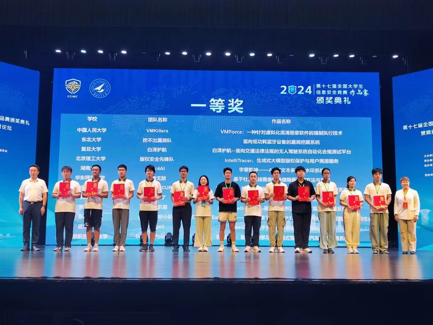 2024年8月,第十七届全国大学生信息安全竞赛作品赛于江苏太仓西北工业大学智汇港举行。由我院2021级本科生程宇、罗镇林和2022级本科生周久安、姜羽泽组成的参赛团队“隐者无敌”提交的作品《基于社交网络图像的稳健隐蔽通信方法与系统》斩获全国一等奖,学院殷赵霞教授荣获“优秀指导教师”奖。