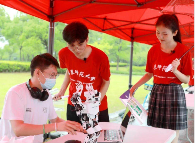 我院田应洪老师带领学生团队展示了机器人和无人机,田老师精彩的讲解、生动有趣的演示,吸引了众多考生与家长的目光,此活动还被纳入了学校“云游华师大”的直播环节。