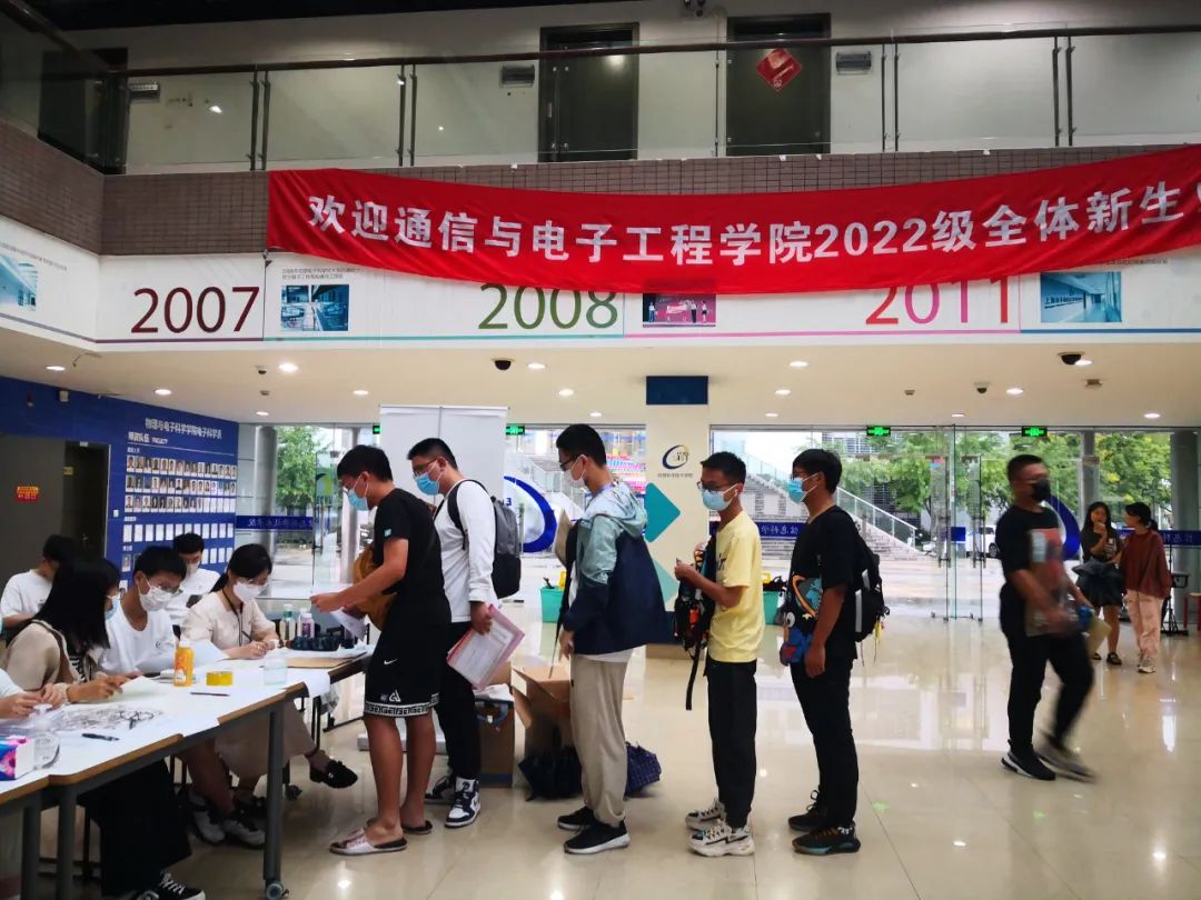 2022年9月5日-6日,通信与电子工程学院迎来了106名本科生、138名研究生同学。迎新工作受到疫情和台风天气的影响,在学院的精心组织下,学院团委学生会、研究生会骨干依然坚守岗位,协助全体2022级新生完成报到。