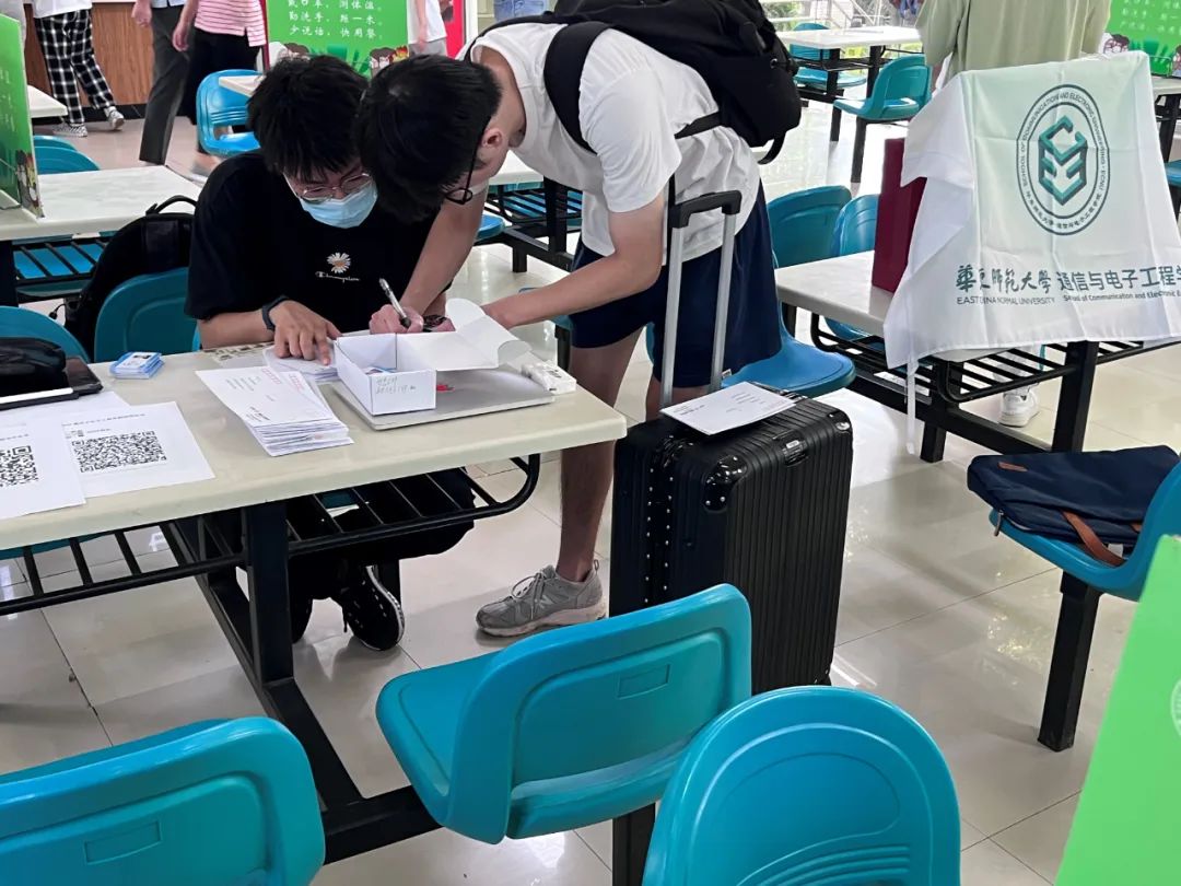 学院严格执行学校的防疫要求,仔细核验核酸检测结果。随着一张张新鲜面孔的出现,信息楼多了一些欢声笑语,多了一丝青春蓬勃活力。在虹梅南路宿舍区设立的校园卡发放点,方便了研究生新生取卡入住。在志愿者同学们和学导的引领下,新生们有条不紊地完成提交入学材料、领取新生手册、领取院服等流程,顺利完成报到。