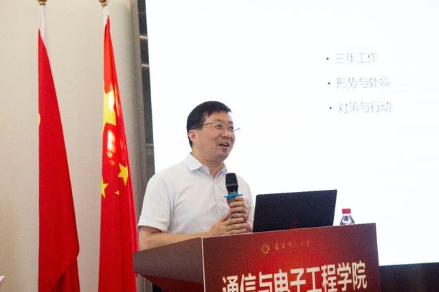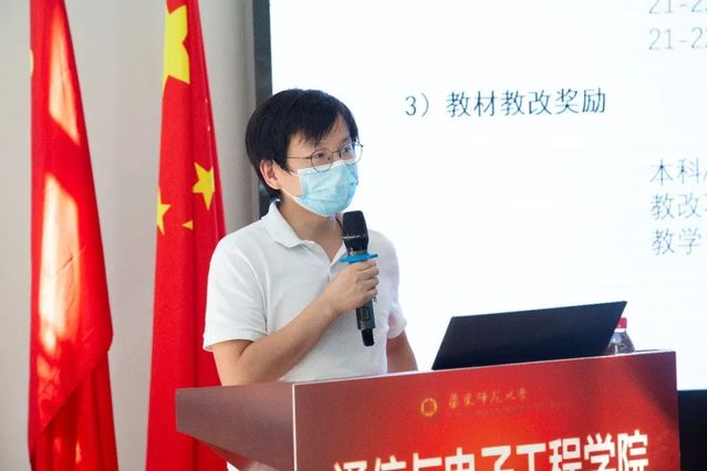学院副院长乔德礼汇报了近期教学工作安排,全国疫情散发,希望老师们要做好线上教学准备,随后详细介绍了学院关于通信学科硕士生、博士生名额分配办法和教材教改奖励规则,同时还对安全工作进行了布置,希望师生注意用电安全,电瓶车不得进楼充电。