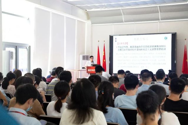 随后开展教职工政治理论学习, 郑正奇书记先后领学了《教育部关于做好庆祝2022年教师节有关工作的通知》、《教育部召开党组会深入学习贯彻习近平总书记在省部级主要领导干部专题研讨班上的重要讲话精神》、中央宣传部、教育部面向全国高校思政课教师组织开展习近平新时代中国特色社会主义思想专题轮训会议精神和全国高校师德师风建设专家委员会工作会议精神,详细解读了教育部印发的《关于加强高校有组织科研 推动高水平自立自强的若干意见》文件。