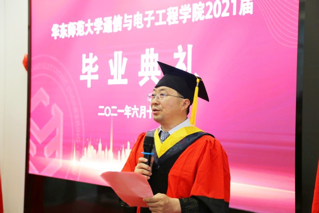 院长吕岳向即将奔赴行业一线、开启人生新征程的2021届249位毕业生送上最诚挚的祝福,并为所有毕业生上最后一课。他强调,“自信”和“坚毅”、“感恩”和“豁达”、“自醒”和“自律”是人生的必修课,希望同学们承担起时代的责任和使命,把板子焊在祖国最需要的地方,把软件、硬件撒向祖国和世界的各个角落!在中国通信与电子的版图中,成为最闪亮的星,真正成为新时代的卓越人才!