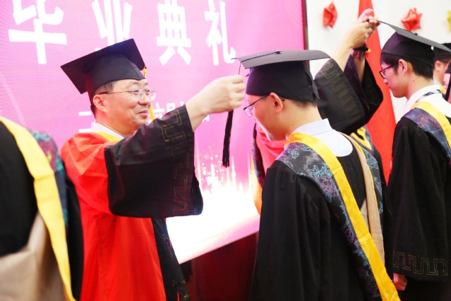 随后,2021届全体毕业生在五位老师的陪伴下完成拨穗仪式。249名毕业生带着学校和学院的期待、带着师长的嘱托正式开启星辰大海的征程!
