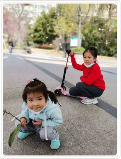 这里有,姐妹俩的滑板车