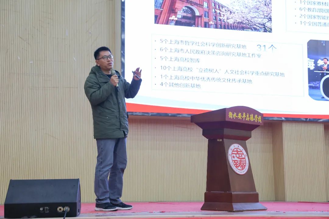 接着,王海建向志臻中学400余名高三学生展开招生宣讲。王海建从一流名校、卓越育人、爱在师大、师大之路等四个方面,详细介绍了华东师范大学的学科优势、专业特色、育人特点。并对高三学生提出的学校优势学科、国家专项和优师专项的区别、双学位培养特点等问题进行了交流解答。