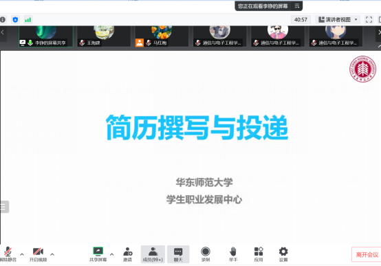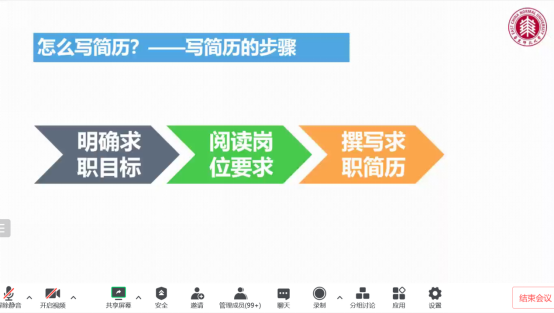 最后,李铮老师结合通信学院学生的专业特点,有针对性地指导学生如何把自己的专业优势、个人特点等体现在简历中,通过“明确求职目标-阅读岗位需求-撰写求职岗位”等步骤,撰写出高质量简历,吸引通信行业公司HR的关注。