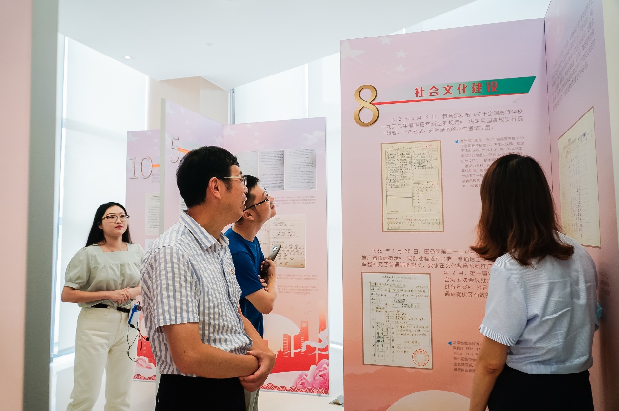 双方在党建中心学生志愿者的讲解下,参观了由我校社会主义历史与文献研究院当代文献史料中心主办的“历史的足迹——中国共产党与百年中国文献展”,通过丰富形象的文献史料,一起深度学习了展示的“探索中国革命道路和完成新民主主义革命”“建立社会主义基本制度和推进社会主义建设”“改革开放和开创中国特色社会主义宏伟事业”三个单元,有力凝聚了两个支部党员对接国家战略需求、为祖国航空事业奋斗的初心决心。