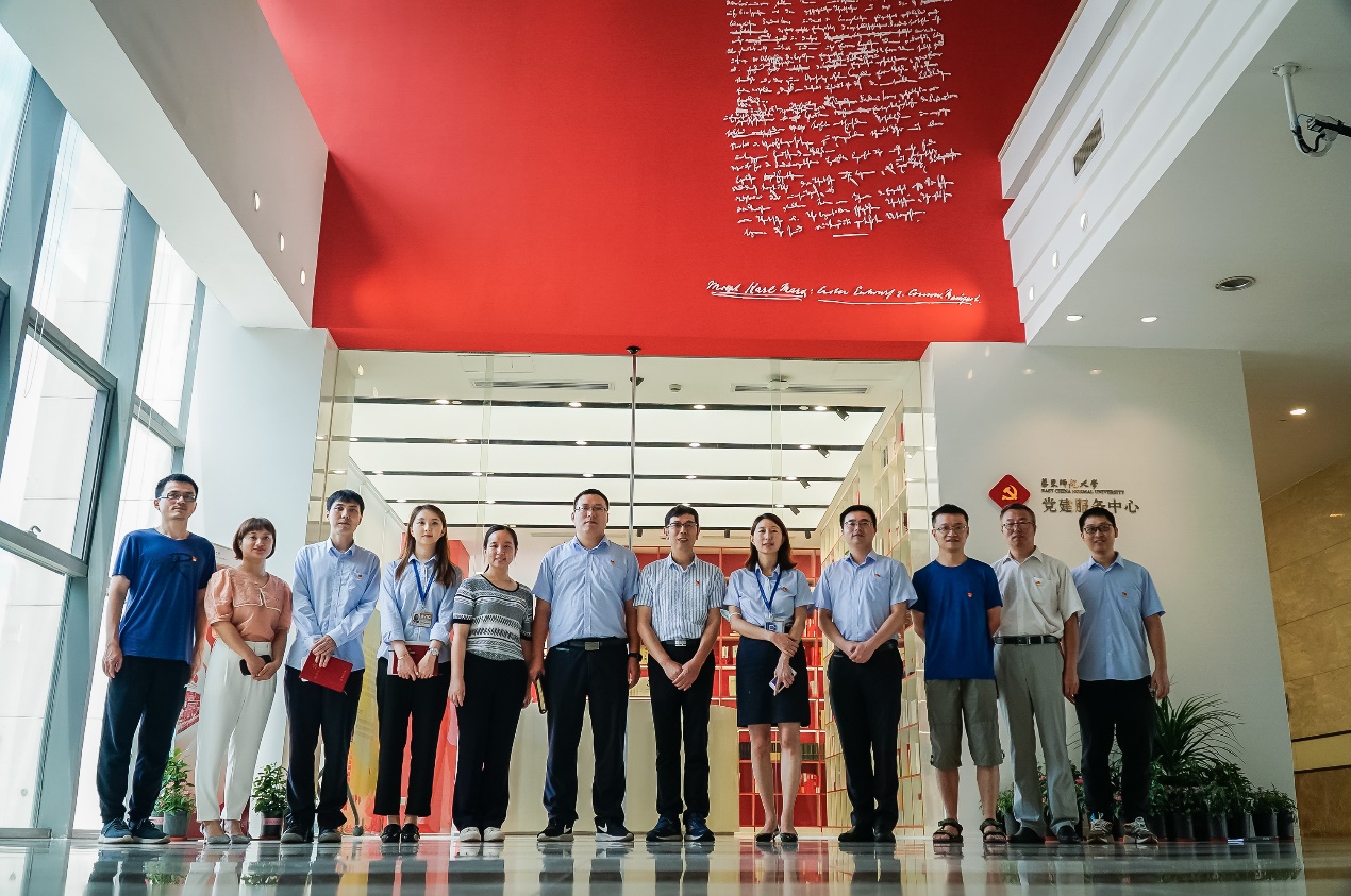 为更好加强基层党建工作,以党建工作凝聚人心,增强服务国家战略需求的力量,双方共同前往行政楼一楼华东师范大学党建服务中心参观学习,学校组织部王淼老师为参观党员进行指引讲解。作为献礼建党百年的实事项目,中心以“党建引领、服务为先、互融互促、共享共育”为建设理念,突出政治功能,彰显党性元素,在打造特色鲜明、活力亲和的党员教育管理服务阵地的同时,注重与服务师生群众相融合相促进,力求把中心建设成为服务党员群众、展示党建成果、培养党员干部、支持师生发展的多功能场所,进而使其成为增强党员和师生归属感、认同感的华东师大“红色地标”。
