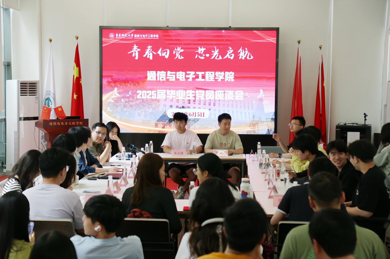 专题党课后,通信与电子工程学院开展了以“青春向党 ‘芯’光启航”为主题的2025届毕业生党员座谈会,程静副校长与党员进行了深入仔细的交流,座谈会由学院党委书记夏冰主持。毕业生党员同学们积极交流发言,分享自己在师大的学习、成长经历,对未来学习和工作生活的展望与规划,以及对学校和学院发展的意见建议。