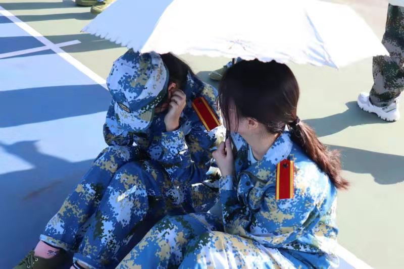 同时我们不能忽略另一部分同学的身影。后勤保障人员的帮助和支持让同学能够毫无保留的在场地上挥洒汗水。在上午的训练中有同学因身体不适而休息,后勤同学义无反顾的为她打伞遮阳。