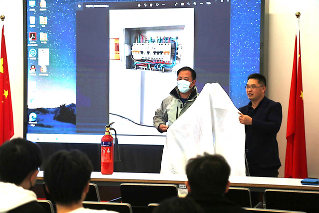 物业经理吴俊向同学们讲述了生活中如何预防火灾、火灾发生后如何报警、常见的消防器材的使用以及火灾发生时如何逃生等与学生日常生活学习密切相关的各类消防安全知识,并列举一些消防安全案例来提醒学生们注重消防安全。