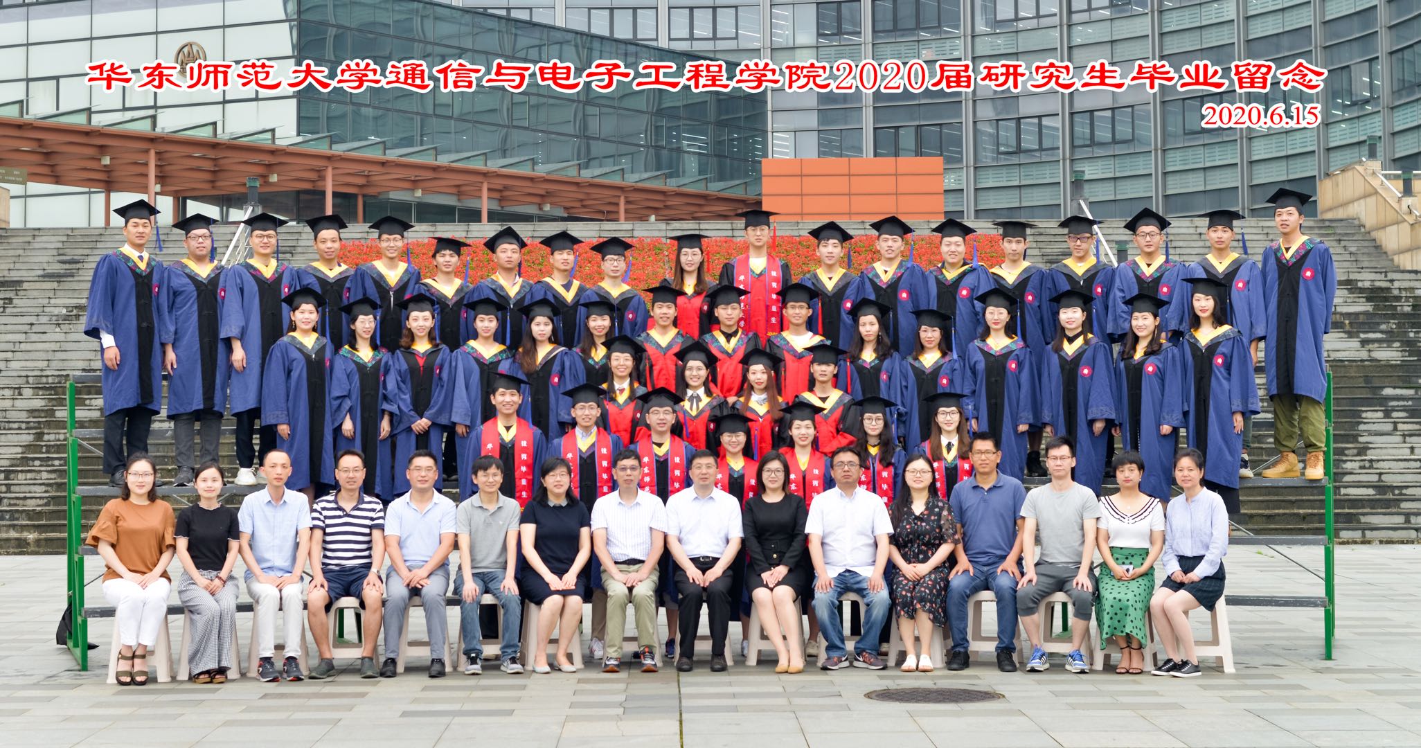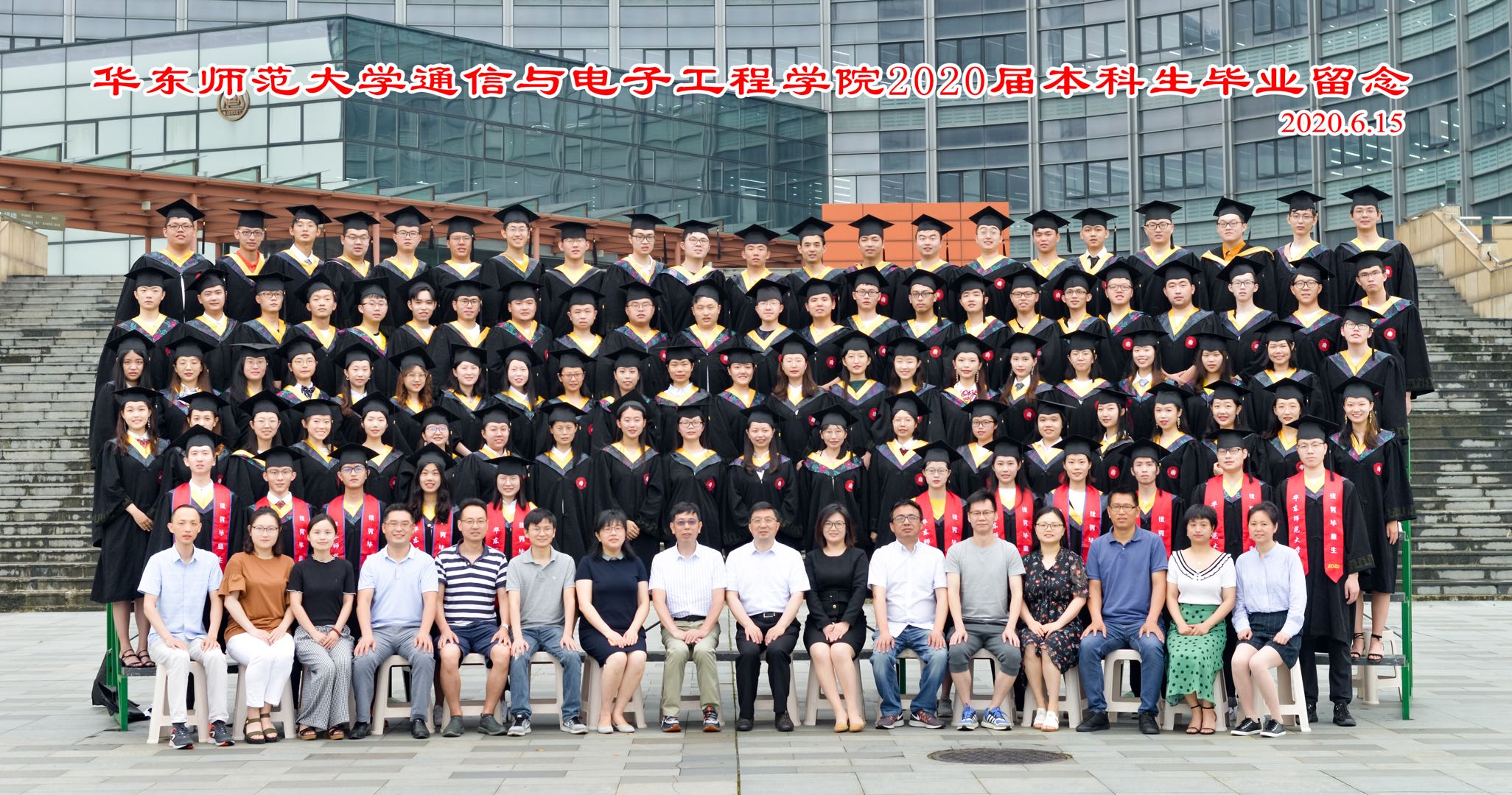 2020年6月23日上午10时,华东师范大学通信与电子工程学院2020届毕业典礼在信息楼顺利举行。学院党委书记郑正奇教授、学院院长吕岳教授、学院党委副书记马红梅老师、学院副院长吴幸教授、副院长乔德礼教授、电子工程系系主任陈少强教授、学院双创中心主任刘一清教授,以及学院2020届的全体毕业生和家长们参加了本次典礼,未能到达现场的师生们通过直播在线观看毕业典礼。