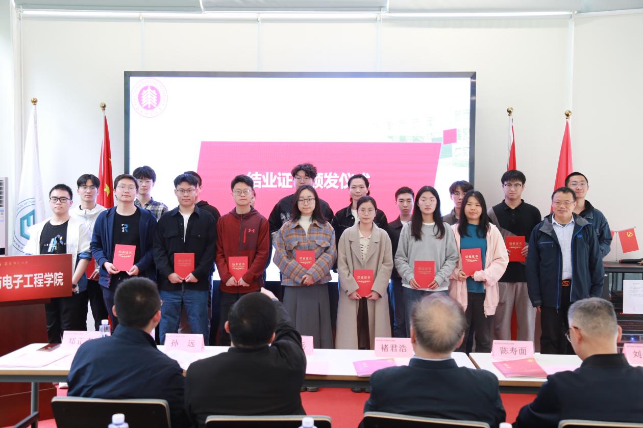 在精英班结业仪式及奖学金颁奖环节,大会为19位顺利完成训练大纲的2020级精英班学子颁发结业证书,并对获得2022-2023年度通信工程精英班奖学金的学生进行了表彰。此外,大会特别设立“通信工程精英班攻坚克难技术成就奖”,以表彰6位青年学子在交通监视系统国产化项目复杂电子设计相关阶段中的突出表现。