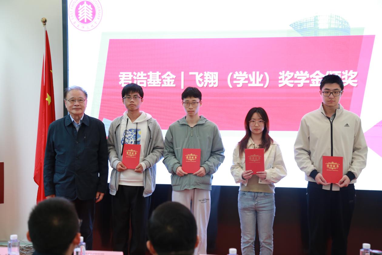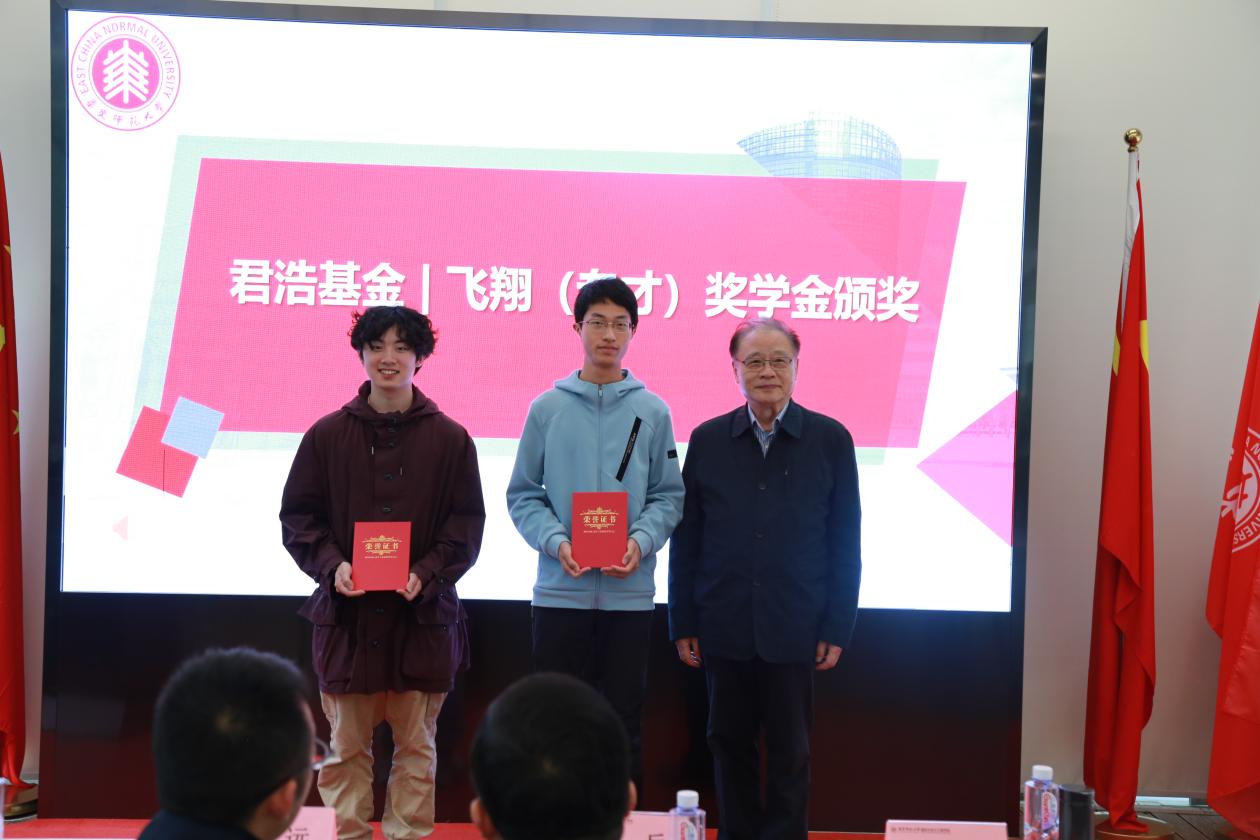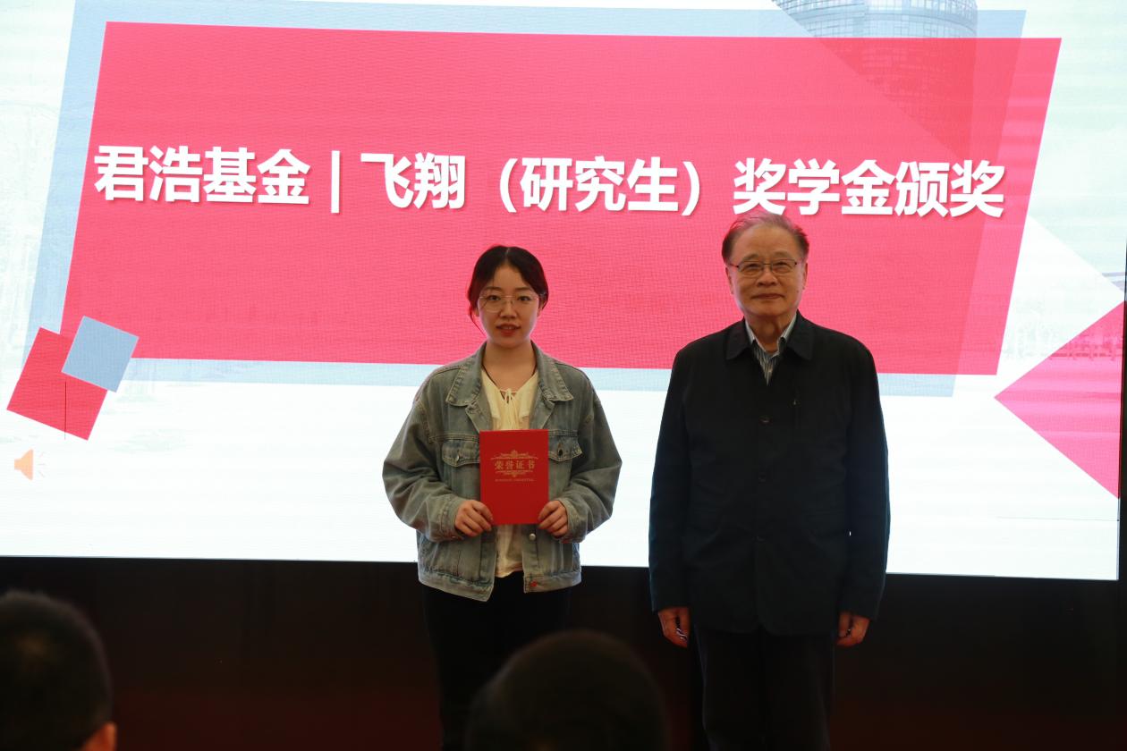 褚君浩院士为飞翔系列学金获奖代表颁奖