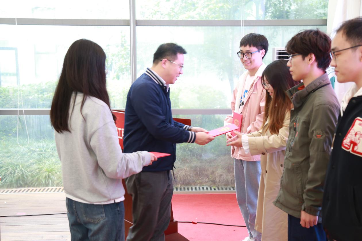 通信与电子工程学院党委副书记、副院长夏冰为优秀共青团员、优秀共青团干部获奖代表颁奖