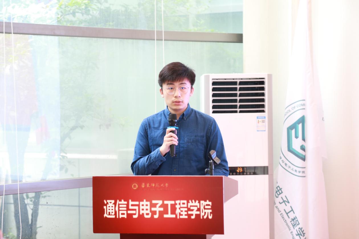 2020级通信工程精英班成员张祥宇作为精英班学生代表发言,他向大家分享了精英班给同学们带来的成长,并代表全班同学对刘一清教授、学院的各位老师表示了最诚挚的感谢和崇高的敬意。