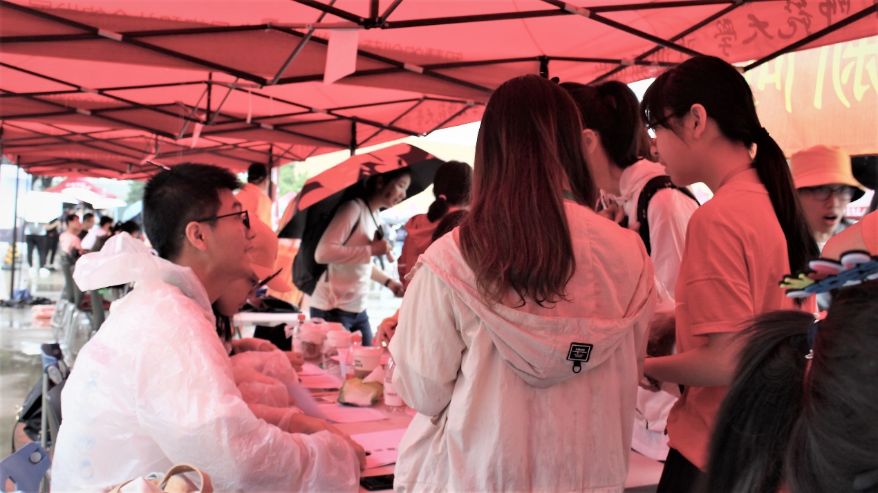 清晨烟雨迷蒙,志愿者们一早就到了大学生活动中心的迎新区域。精心设计的新生手册、整齐排列的校园卡、暖心准备的雨衣……一系列富有特色的迎新布展充分表达了志愿者对新生的热情和欢迎。随着新生的陆续到达,志愿者们为萌新们热情洋溢地介绍报到流程,引导新生领取校园卡、办理绿色通道,耐心解答新生疑惑,用热心、耐心与真心给予了新生们一个又一个的盛情欢迎,把“爱在华师大”“学在华师大”的第一印象深深地留在了新同学的脑海中。